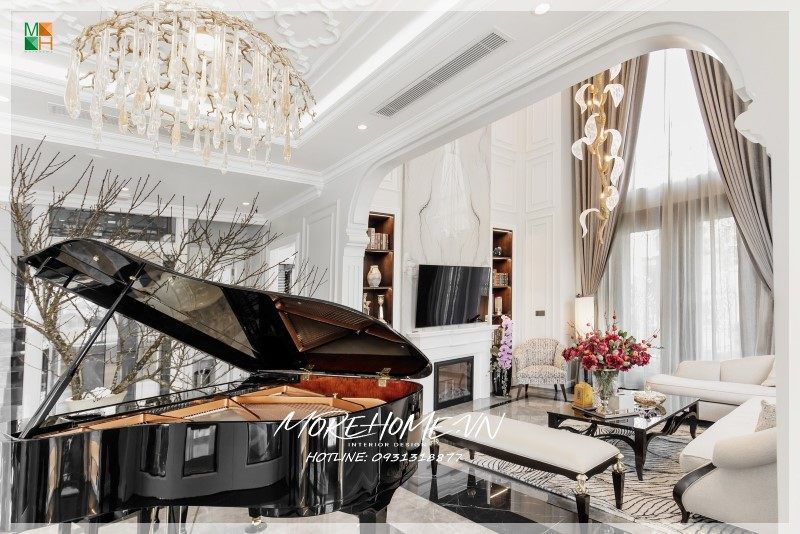 Đàn piano trang trí theo phong cách cổ điển đẹp tạo ấn tượng mạnh cho căn hộ biệt thự, nhà phố cao cấp.