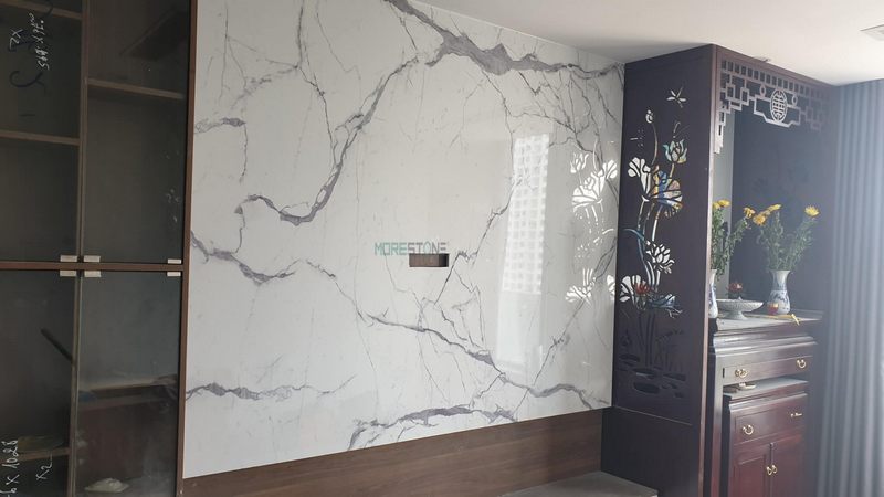 Morehome thi công đá ốp vách tivi bằng đá granite cao cấp với hoa văn tự nhiên sang trọng cho công trình HN