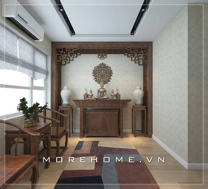 Bàn thờ phật cao cấp từ gỗ sồi được thiết kế để phù hợp với nhà phố hiện đại.